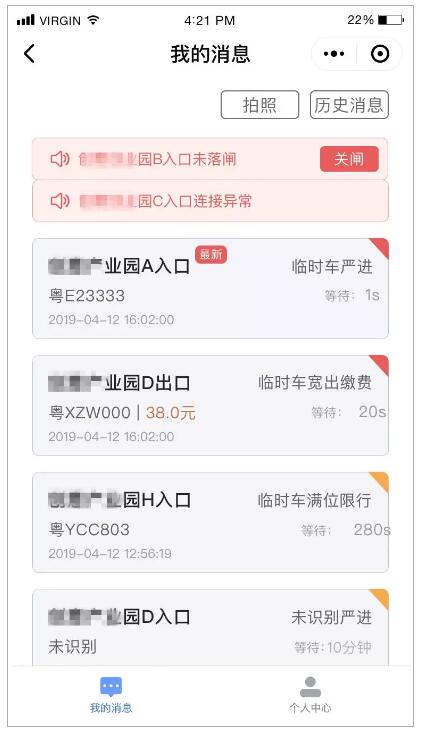 通过“一点停车场”公众号,可实现设备、网络、系统异常实时警告,提醒车场管理人员及时处理异常,保障车场正常运行!