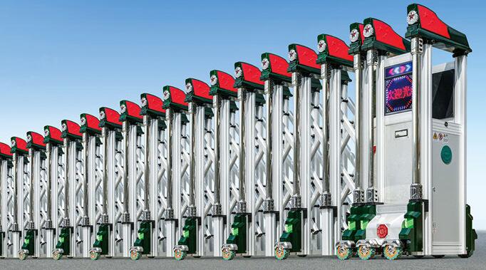 宝鸡伸缩门就是门体可以伸缩自由移动,来控制门洞大小、来控制行人或车辆的拦截和放行的一种门。伸缩门主要由门体、驱动电机,滑道、控制系统构成。门体采用优质不锈钢及铝合金专用型材制作,采用平行四边形原理铰接,伸缩灵活行程大。驱动器采用特种电机驱动,蜗杆蜗轮减速,并设有自动离合或手动离合器,自动离合停电时可自动启闭,手动离合停电时可手动启闭,控制系统有控制板,按钮开关,另可根据需求配备无线遥控装置。