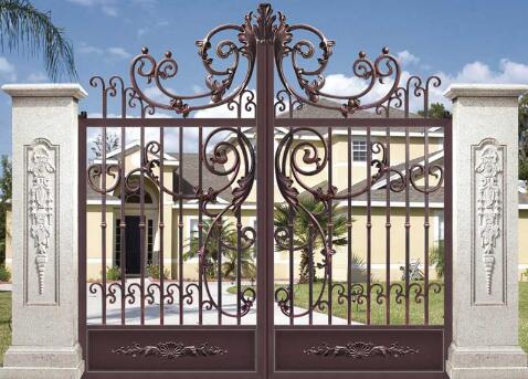 菏泽别墅铝艺大门采用优质铝型材与进口木材配搭而成,工艺独特,美观大方,坚固耐用,是别墅庭院、高档花园小区的选择。菏泽别墅铝艺大门采用拼装技术,安全简洁,有浑然天成之美。