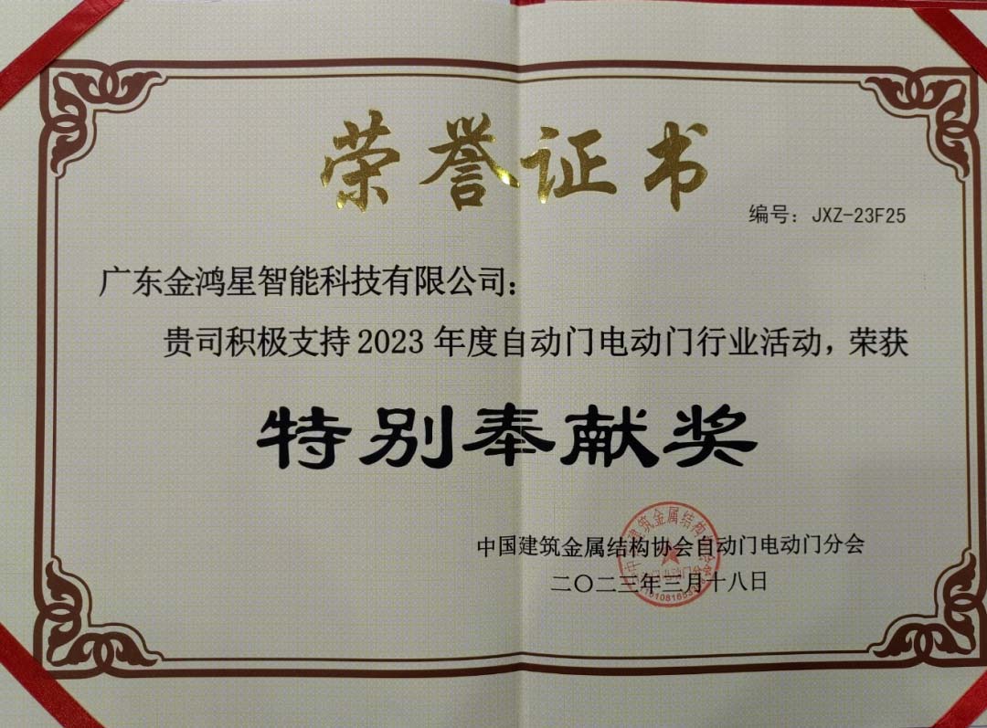 每一次荣耀加冕,每一个辉煌瞬间,都是金鸿星奋发向上的无尽动力,金鸿星将继续坚守匠心精神,以更高品质和产品及更优质的服务,推动电动门行业的高质量发展。