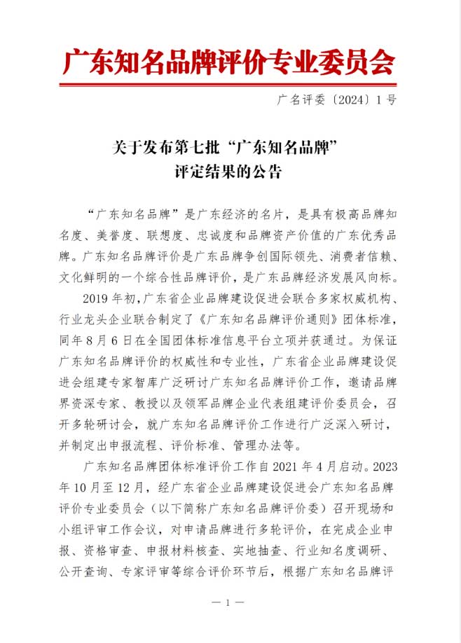 “广东知名品牌”是广东经济的名片,是具有极高品牌知名度、美誉度、联想度、忠诚度和品牌资产价值的广东优秀品牌。广东知名品牌评价是广东品牌争创国际领先、消费者信赖、文化鲜明的一个综合性品牌评价,是广东品牌经济发展风向标。