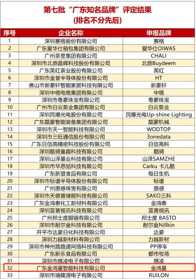 再添荣誉丨热烈祝贺金鸿星获评第七批“广东知名品牌”