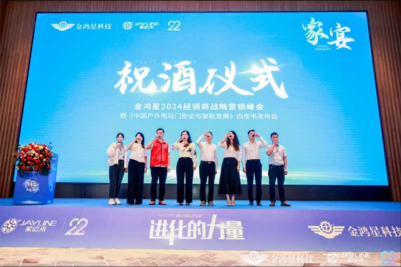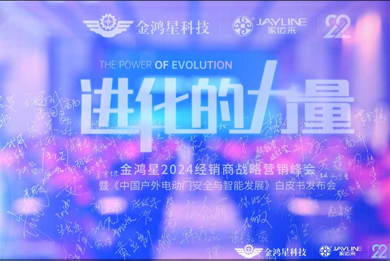 于高山之巅方见大河奔涌,于群峰之上更觉长风浩荡,金鸿星2024年全国经销商战略营销峰会暨《中国户外电动门安全与智能发展》发布会圆满成功!创辉煌,千里之行始于今朝;踏征程,万里扬帆再启航;乘八面之风,应万众期待;不负青春,不负韶华;感恩遇见,同心同行。