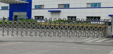 嘉兴伸缩门门体采用优质不锈钢及铝合金专用型材制作,采用平行四边形原理铰接,伸缩灵活行程大,给嘉兴市神龙外国语培训学校项目不一样的体验。