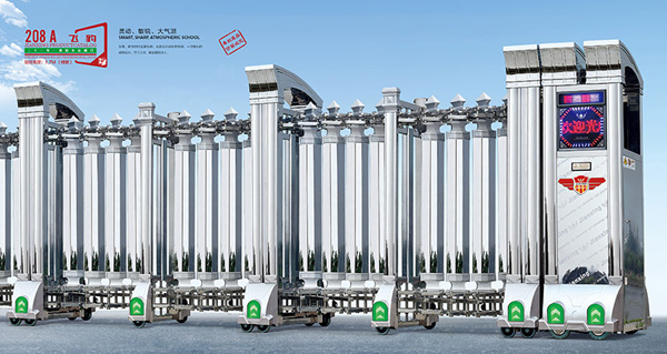 南阳伸缩门就是门体可以伸缩自由移动,来控制门洞大小、来控制行人或车辆的拦截和放行的一种门。伸缩门主要由门体、驱动电机,滑道、控制系统构成。门体采用优质不锈钢及铝合金专用型材制作,采用平行四边形原理铰接,伸缩灵活行程大。驱动器采用特种电机驱动,蜗杆蜗轮减速,并设有自动离合或手动离合器,自动离合停电时可自动启闭,手动离合停电时可手动启闭,控制系统有控制板,按钮开关,另可根据需求配备无线遥控装置。