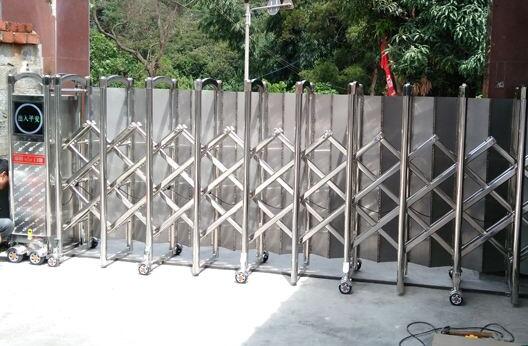 衢州电动伸缩门就是门体可以伸缩自由移动,来控制门洞大小、来控制行人或车辆的拦截和放行的一种门。电动伸缩门主要由门体、驱动电机,滑道、控制系统构成。门体采用优质不锈钢及铝合金专用型材制作,采用平行四边形原理铰接,伸缩灵活行程大。驱动器采用特种电机驱动,蜗杆蜗轮减速,并设有自动离合或手动离合器,自动离合停电时可自动启闭,手动离合停电时可手动启闭,控制系统有控制板,按钮开关,另可根据需求配备无线遥控装置。