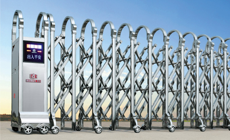 电动伸缩门就是门体可以伸缩自由移动,来控制门洞大小、来控制行人或车辆的拦截和放行的一种门。伸缩门主要由门体、驱动电机,滑道、控制系统构成。门体采用优质不锈钢及铝合金专用型材制作,采用平行四边形原理铰接,伸缩灵活行程大。驱动器采用特种电机驱动,蜗杆蜗轮减速,并设有自动离合或手动离合器,自动离合停电时可自动启闭,手动离合停电时可手动启闭,控制系统有控制板,按钮开关,另可根据需求配备无线遥控装置。