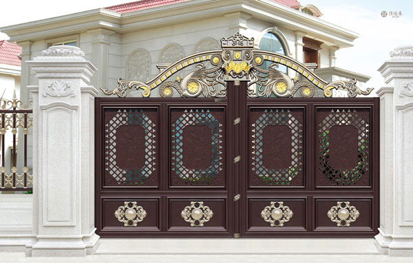 表面颜色: 一般铝艺大门颜色基本有6种左右,分别为黑、白、金古铜、青古铜、红古铜、这几种颜色,如果要做仿铜工艺的大门,则要求的工艺较为复杂,其产品定位也比较高,价格自然比普通铝艺大门颜色贵出好几倍的。