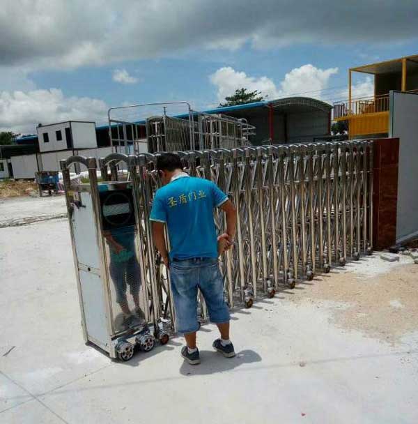 今天早上扬州出安智能为扬州宏钜展柜制作工厂安装伸缩门,扬州出安智能感谢客户对扬州伸缩门事业的支持!