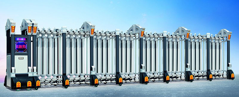 驻马店伸缩门就是门体可以伸缩自由移动,来控制门洞大小、来控制行人或车辆的拦截和放行的一种门。伸缩门主要由门体、驱动电机,滑道、控制系统构成。门体采用优质不锈钢及铝合金专用型材制作,采用平行四边形原理铰接,伸缩灵活行程大。驱动器采用特种电机驱动,蜗杆蜗轮减速,并设有自动离合或手动离合器,自动离合停电时可自动启闭,手动离合停电时可手动启闭,控制系统有控制板,按钮开关,另可根据需求配备无线遥控装置。
