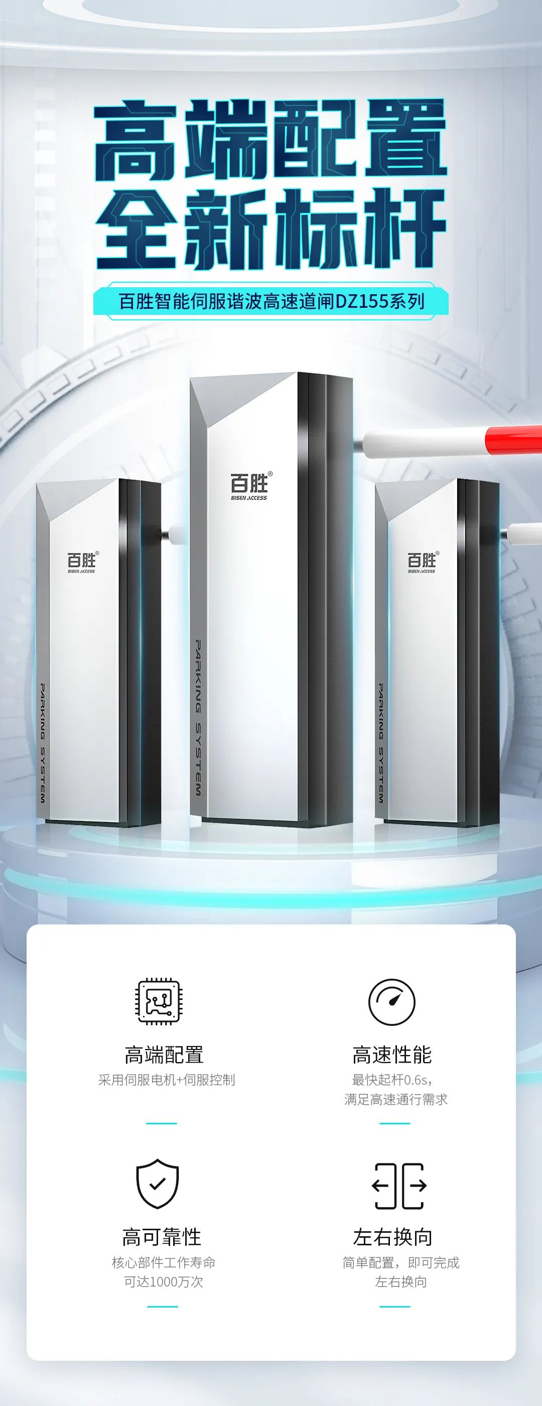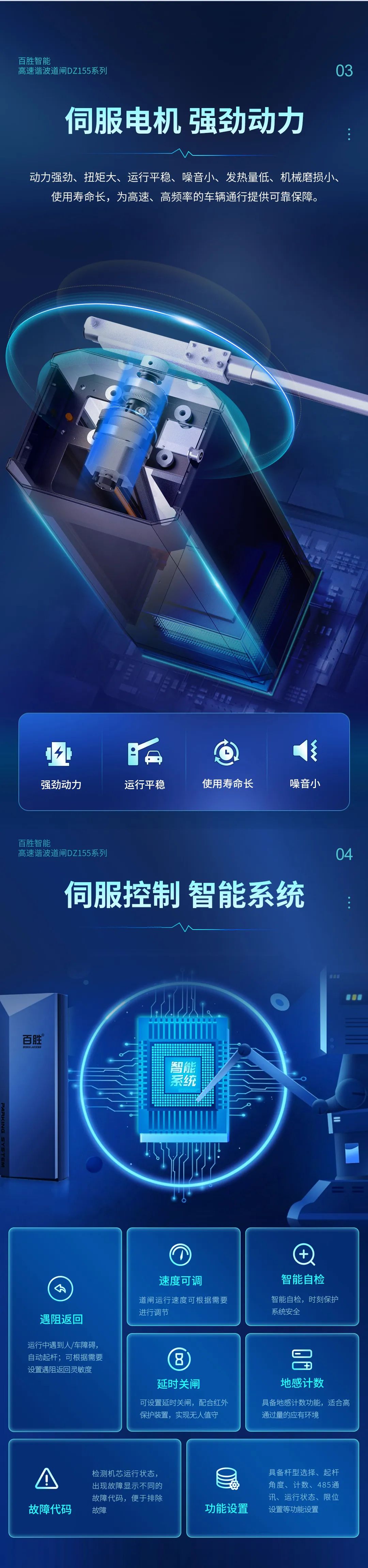 伺服电机强劲动力:动力强劲、扭矩大、运行平稳、噪音小、发热量低、机械磨损小、使用寿命长,为高速、高频率的车辆通行提供可靠保障。