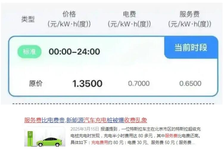 但是,由于实行价费分离,充电站服务费也呈现“两极乱象”:一方面,低价竞争挤压了设备更新、运维升级的资金空间,部分场站为控制成本减少运维投入,导致设备故障率上升、充电体验下降;另一方面,部分垄断地段场景也会借“价费分离”政策反向操作,提高服务费。公开新闻报道中,有核心商圈场站凭借区位优势,服务费普遍在0.6-1.2元/度,总费用(电价+服务费)可达1.7-2.5元/度。