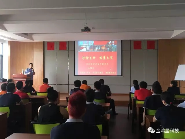 为提高员工的安全意识和应急处置能力,2017年5月26日上午,金鸿星电动门业邀请消防宣传员现场培训消防安全知识及应急演练活动,在消防安全培训中,消防宣传员结合全国发生的典型火灾案例,详细介绍了寄递渠道防火安全和重要部位的安全防护措施进行了深入阐述,还详细讲解了火灾预防的基本概念、灭火的基本方法、火灾类型、灭火物品的种类等消防安全知识。