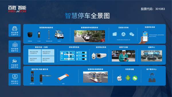 面对日益增长的城市级停车需求,百胜通过打造“硬件+平台+运营”综合能力,研发“路侧、场内停车一体化”解决方案,完备的“地磁+pos机、高位相机+地位视频桩、智慧车位锁及整套的无人值守停车管理设备”,打造城市级智慧停车平台,提供城市级停车运营服务。百胜将继续有效推进城市级智慧停车项目的建设工作,提升项目质量与价值,与合作伙伴一起共同创造一个更智慧的城市与更美好的未来。