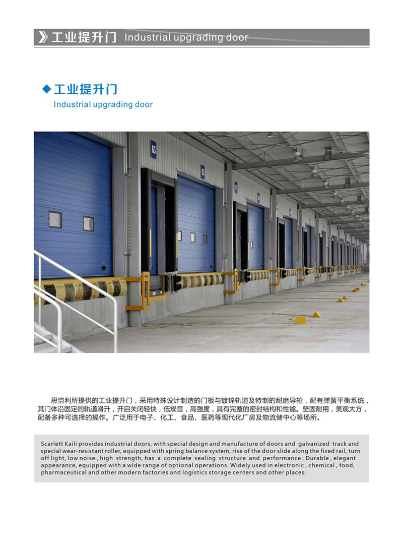 产品,请仔细浏览本页面。如您还有疑问,请拨打服务电话,我们将免费为您提供工业提升门的款式、价格、生产厂家、安装维修等方面的咨询服务。