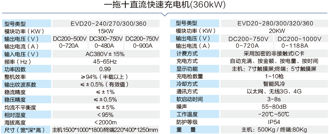 分体式直流充电产品是一种将直流变换和直流输出控制两部分,分立组成的智能充电系统,它们之间通过直流电缆组成一套完整的充电机,具有人机交互,刷卡,计费,监控,通信等主要功能。