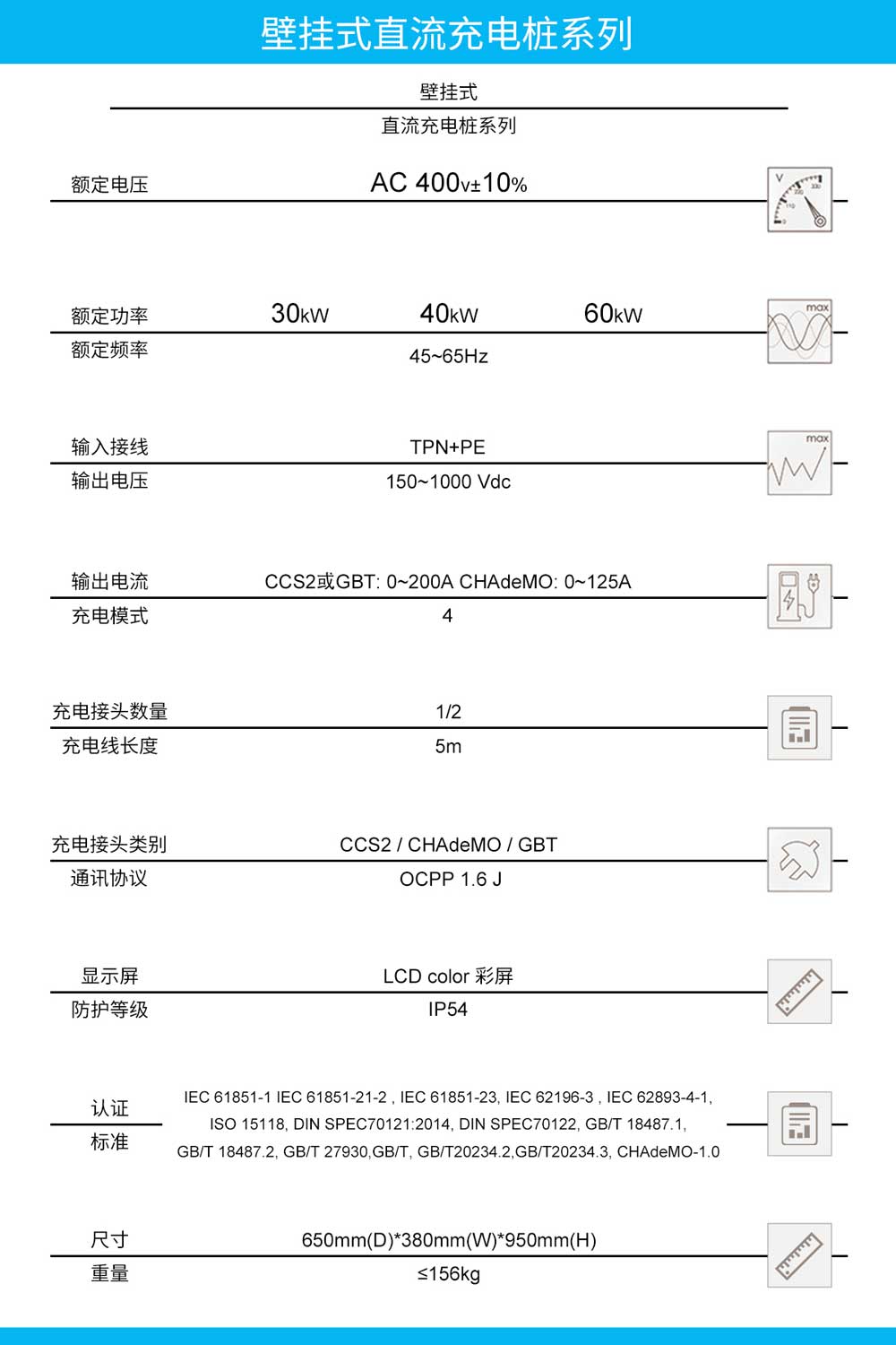 产品名称:壁挂式直流充电桩系列