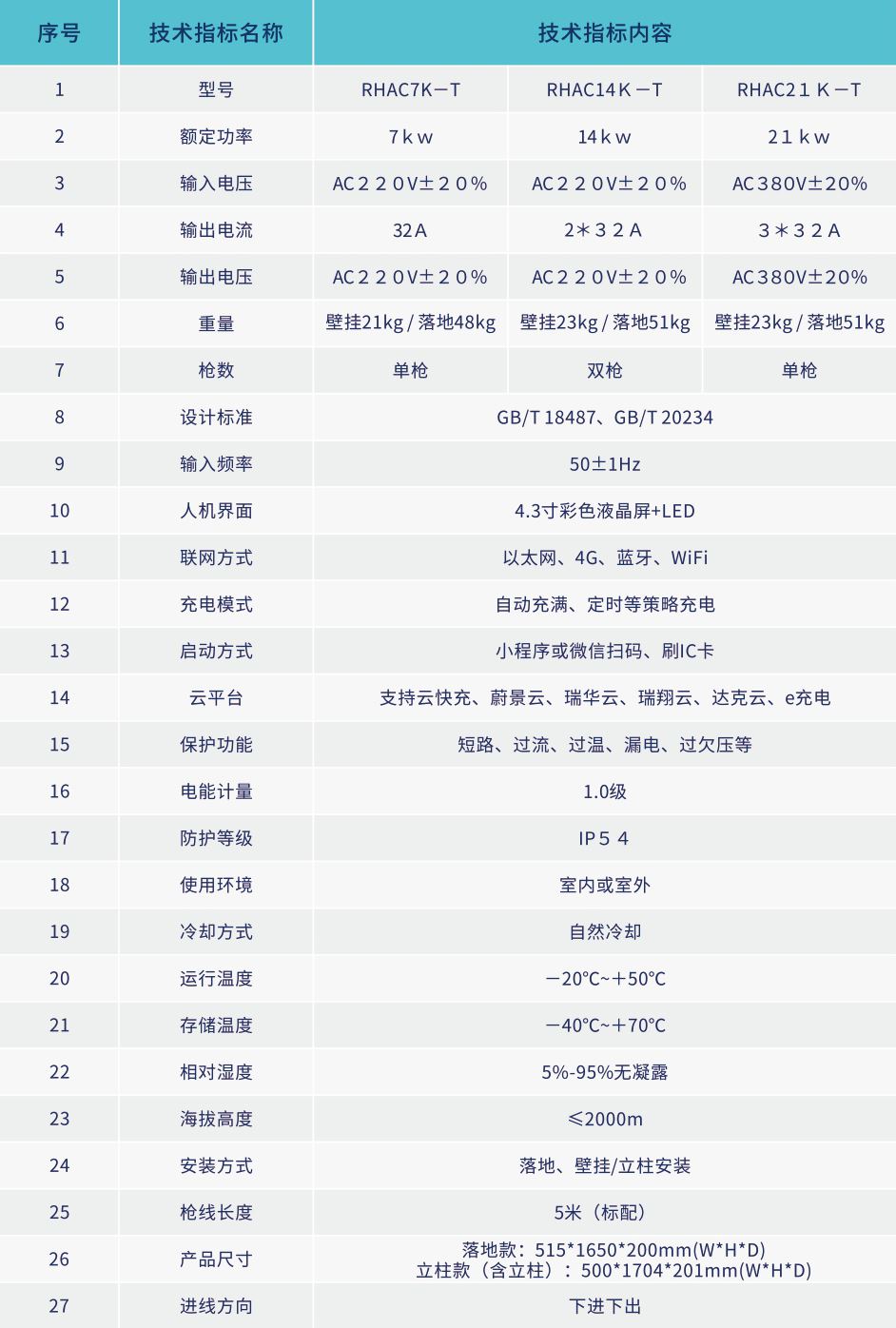 高附加值——具有静态、动态广告功能,增加充电桩附加值(创收) 高性价比——采用一柜双枪设计,有效降低成本 安全可靠——具备IP54防护等级、过流、短路、过温、过欠压、过载、漏电、防浪涌等保护功能 智能便捷——支持4G、WiFi、蓝牙、以太网组网方式,可通过APP、微信公众号、小程序可扫码充电、查询充电实况信息等功能 应用广泛——适用于户外高温、高湿、多尘环境,高档小区、写字楼、大型商场、酒店等公共场所停车场