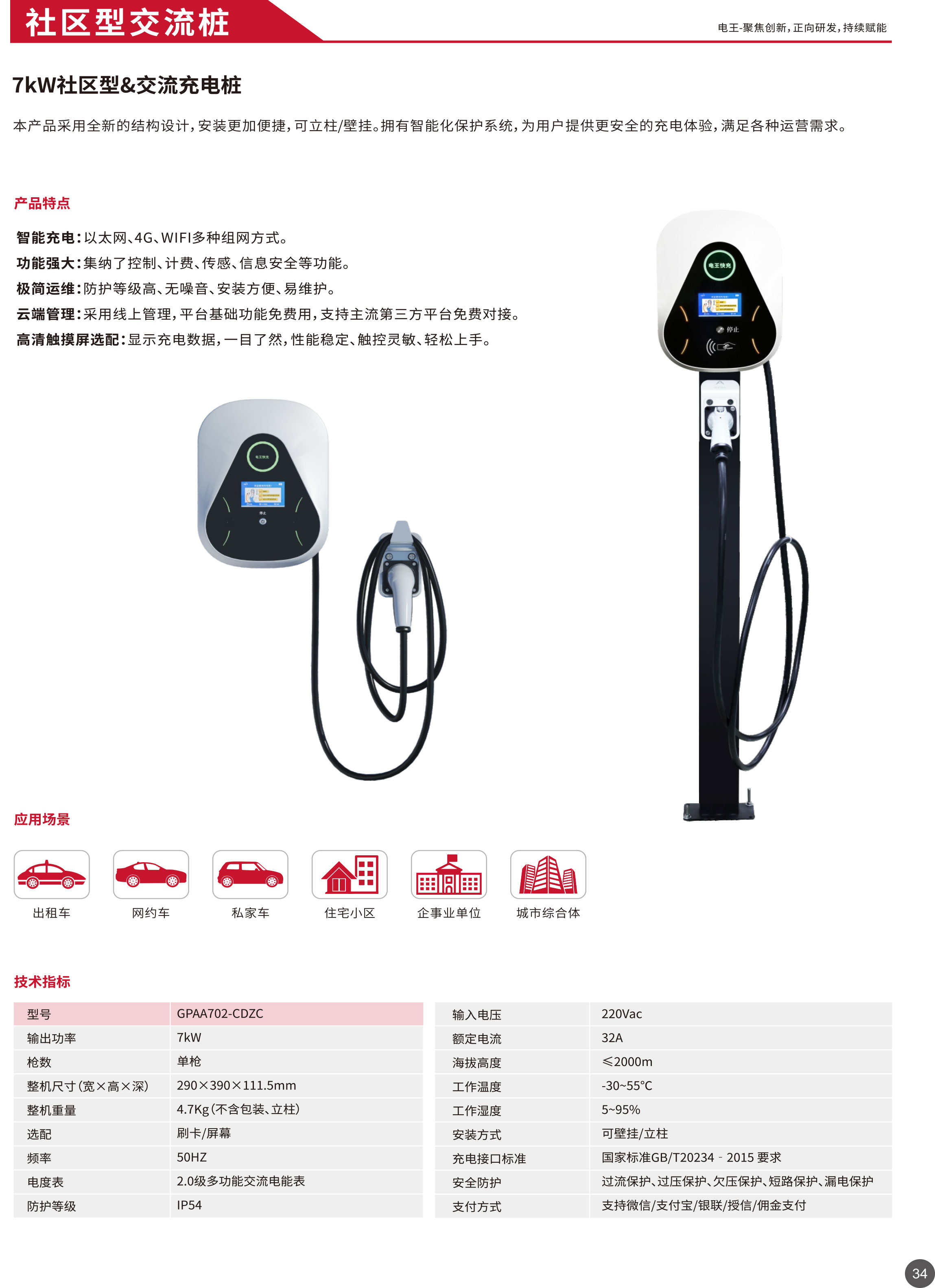 产品,请仔细浏览本页面。如您还有疑问,请拨打服务电话,我们将免费为您提供7kW社区型&交流充电桩(国标)的款式、价格、生产厂家、安装维修等方面的咨询服务。