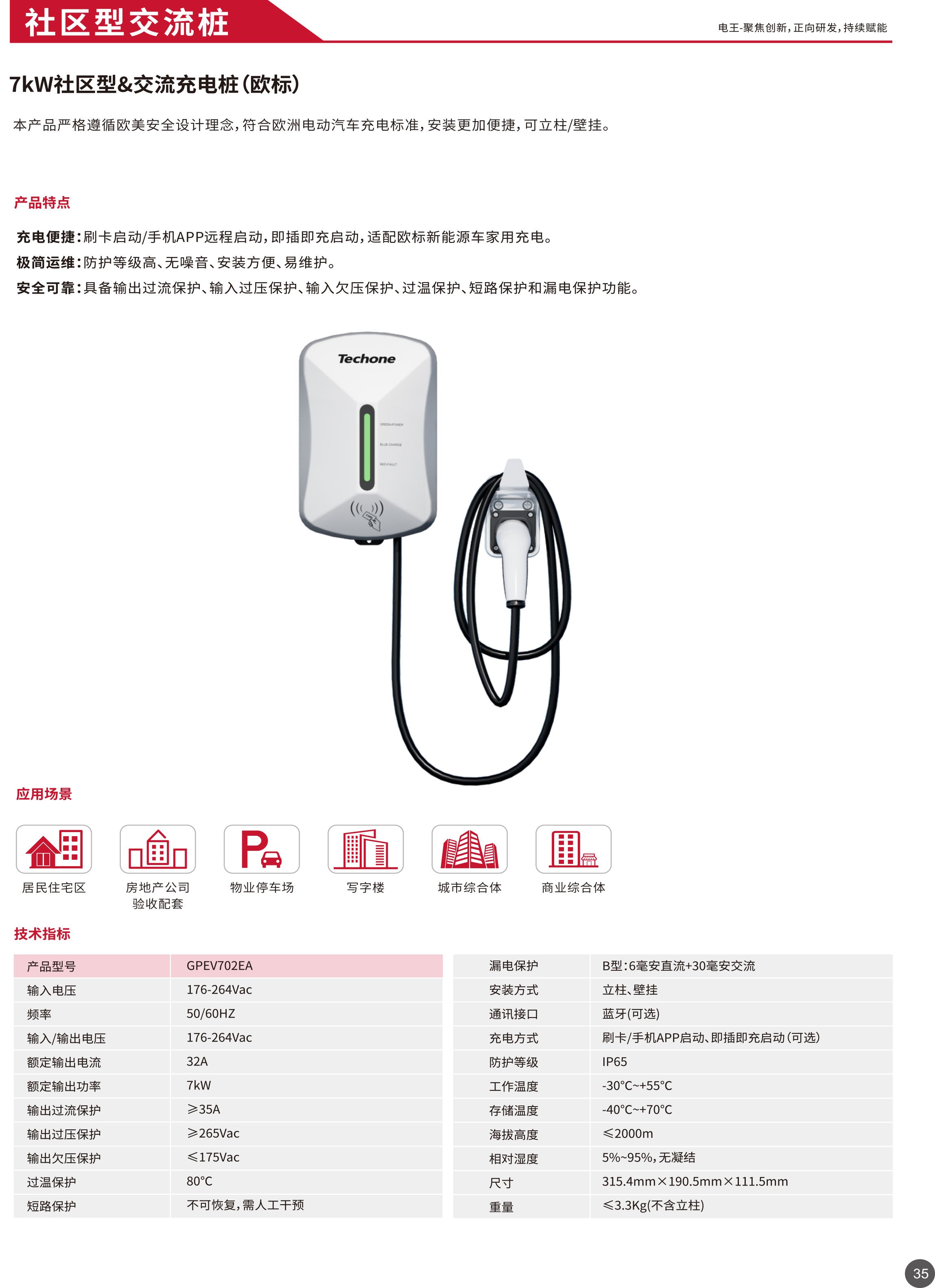 产品,请仔细浏览本页面。如您还有疑问,请拨打服务电话,我们将免费为您提供7kW社区型&交流充电桩(欧标)的款式、价格、生产厂家、安装维修等方面的咨询服务。