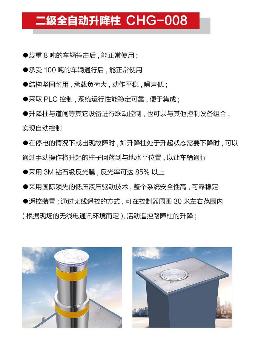 产品,请仔细浏览本页面。如您还有疑问,请拨打服务电话,我们将免费为您提供二级全自动升降柱 CHG-008的款式、价格、生产厂家、安装维修等方面的咨询服务。