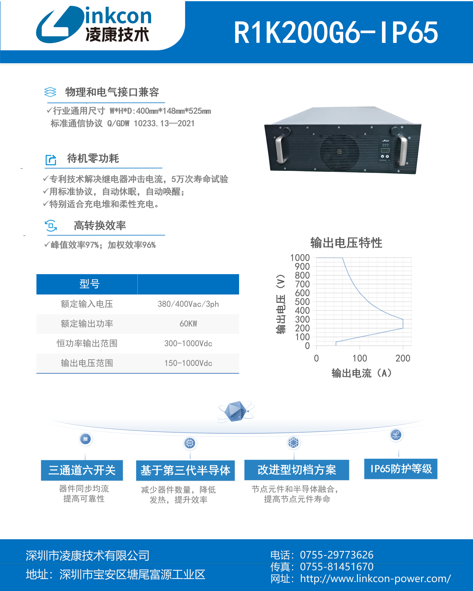 产品,请仔细浏览本页面。如您还有疑问,请拨打服务电话,我们将免费为您提供R1K200G6-IP65充电模块的款式、价格、生产厂家、安装维修等方面的咨询服务。