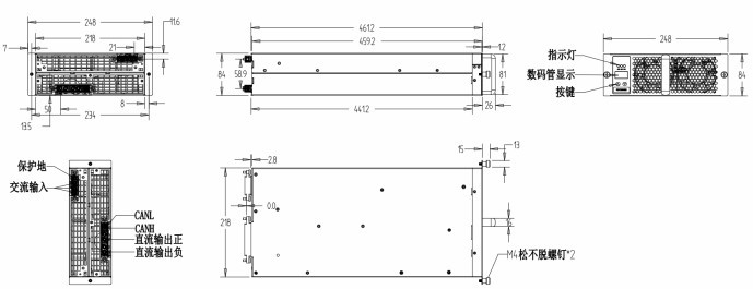 输出电压≤300V,限最大电流67A, 输出电压>300V,限最大功率20KW,详见图1.2模块输出电压与输出电流关系示意图 |