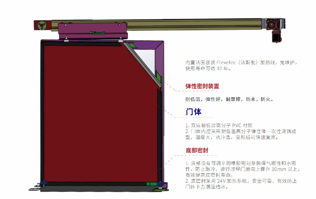 快速平移冷库门,快速、节能、密封、抗撞于一身的新型快速保温门,拥有很高的可靠性和实用性,其运行速度是普通冷库平移门的3倍以上,凭借极高的工作效率,更高的安全性,快速平移保温门正在逐渐替代普通冷库平移门。
