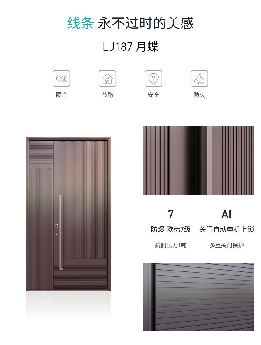 产品,请仔细浏览本页面。如您还有疑问,请拨打服务电话,我们将免费为您提供装甲门LJ187的款式、价格、生产厂家、安装维修等方面的咨询服务。