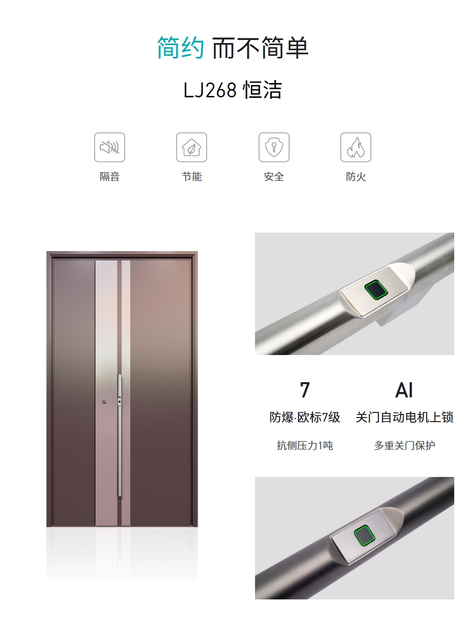产品,请仔细浏览本页面。如您还有疑问,请拨打服务电话,我们将免费为您提供装甲门LJ268的款式、价格、生产厂家、安装维修等方面的咨询服务。