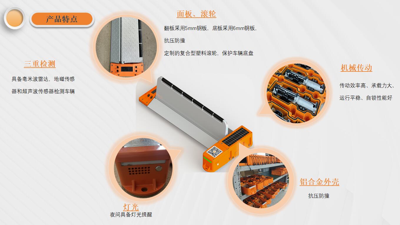 无车辆驶入时,降板状态,不形成路障;升版过程遇阻停止,采用