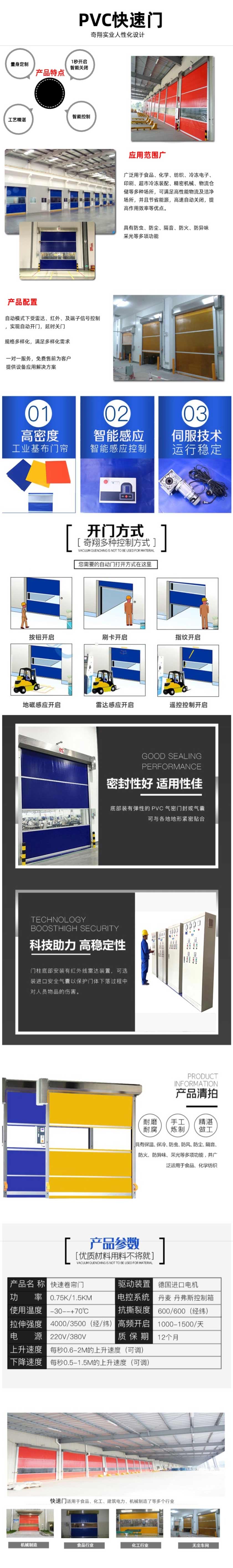 产品特点:广泛用于食品、化学、纺织、冷冻电子、印刷、超市冷冻装配、精密机械、物流仓储等多种场所,可满足高性能物流及洁净场所,并且节省能源,高速自动关闭,提高作用效率等优点。