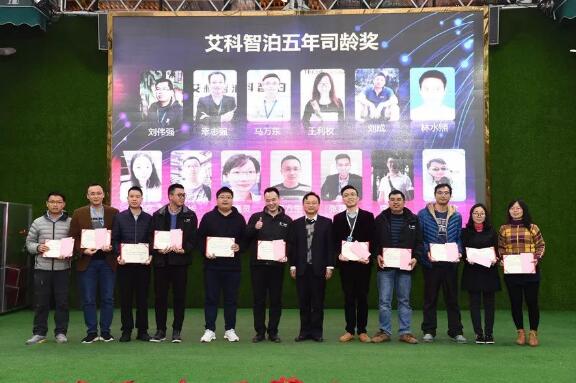 2018年,艾科智泊成绩斐然,离不开每一位艾科人的辛勤汗水,为表彰员工们的努力与付出,依次颁发了优秀新人奖,艾科智泊部门优秀员工奖艾科智泊公司优秀员工奖,五年、十年,十五年司龄奖 艾科智泊销售冠军奖等每年传统奖项。