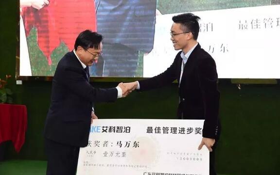 做为转型成功的互联网公司,真是把创新武装到骨子里了,连奖项设置都那么特别。接下来又依次颁发了艾科智泊最佳管理进步奖、劳动模范奖、自我上进奖、生态建设奖、最佳攻坚克难团队奖、最佳“双规”奖、专治疑难杂症奖、伯乐奖、最佳瘦身奖。
