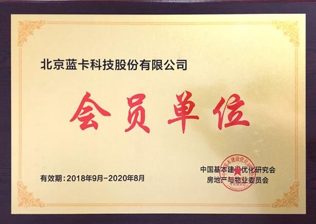 蓝卡科技入驻中国基本建设优化研究会房地产与物业委员会“会员单位”