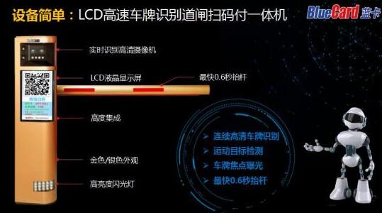 【设备简单】LCD高速车牌识别道闸扫码付一体机,具有连续高清车牌识别、运动目标检测、车牌焦点曝光、最快0.6秒抬杆等多重功能。