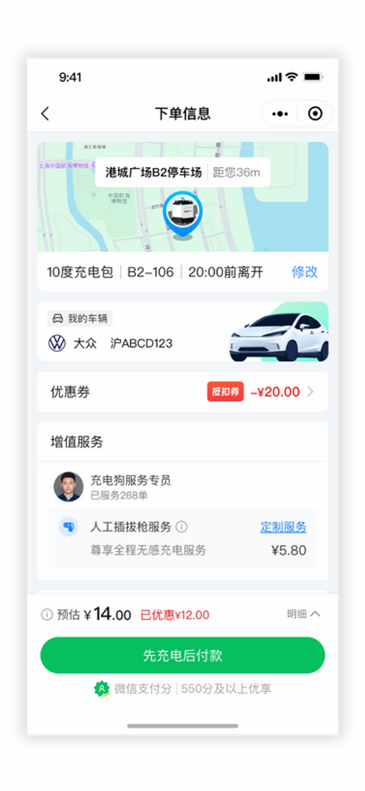在小程序内选择「停车车位号」与「离场时间段」,工作人员将按照车主预约信息,辅助完成充电。