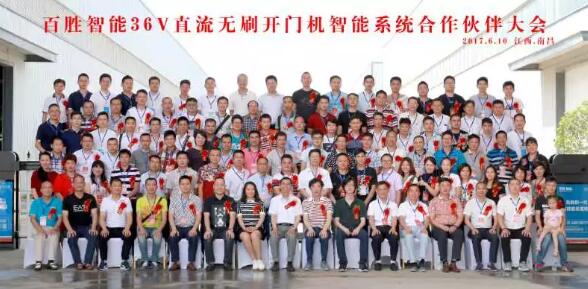 ▲2017年6月份,成功举办“36V直流无刷开门机智能系统合作伙伴发展大会”。百胜在会议上呼吁:上下游企业携手同心、共同努力,推动安全电压开门机系统的市场普及。