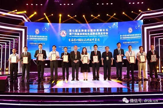“品牌引领,创造质量”,4月20日,首届“深圳国际品牌周”在深圳广电演播厅盛大开幕。作为品牌周的主场活动,第七届品牌建设国际高端论坛暨第十四届深圳知名品牌成果发布会在演播厅隆重举行。原国家航空航天工业部部长、深圳工业总会最高顾问林宗棠,全国人大原常委、深圳市委原书记、深圳工业总会荣誉主席李灏,国务院参事、中国品牌建设促进会名誉副理事长、国家质检总局原副局长葛志荣,联合国工业发展组织有关机构负责人,广东省人民政府参事王肇文、刘胜利、魏达志,市老领导周长瑚、廖军文等,共同为获奖品牌企业颁奖。来自国内外的知名专家,深圳市、区有关部门和企业家代表1000余人聚集一堂,共享盛会。深圳市道尔智控科技股份有限公司荣幸受邀参加本次活动,并荣膺第十四届“深圳知名品牌”荣誉称号!