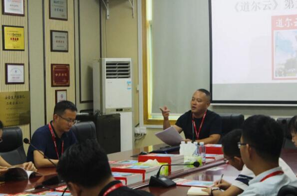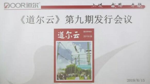 《道尔云》第九期发行会议8月15日在深圳道尔总部举行,王总就《道尔云》供稿、考试、评优、微信推广作出安排,倡导多媒介传播道尔文化。胡总主持会议,白老师通报了供稿和考试情况,公司各部门负责人参加会议。
