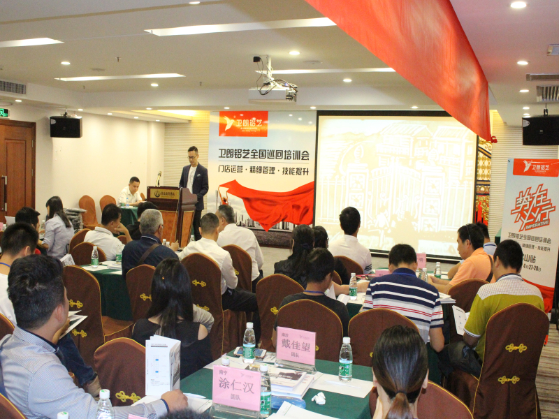 4月27-28日,“卫朗铝艺2017年全国巡回培训会—佛山站”在佛山佳高商务酒店成功举办,卫朗铝艺总经理龙海勇、销售部总监吴为杰、华南大区经理陈春连等嘉宾出席此次培训会,会议围绕“门店运营·精细管理·技能提升”三方面展开。