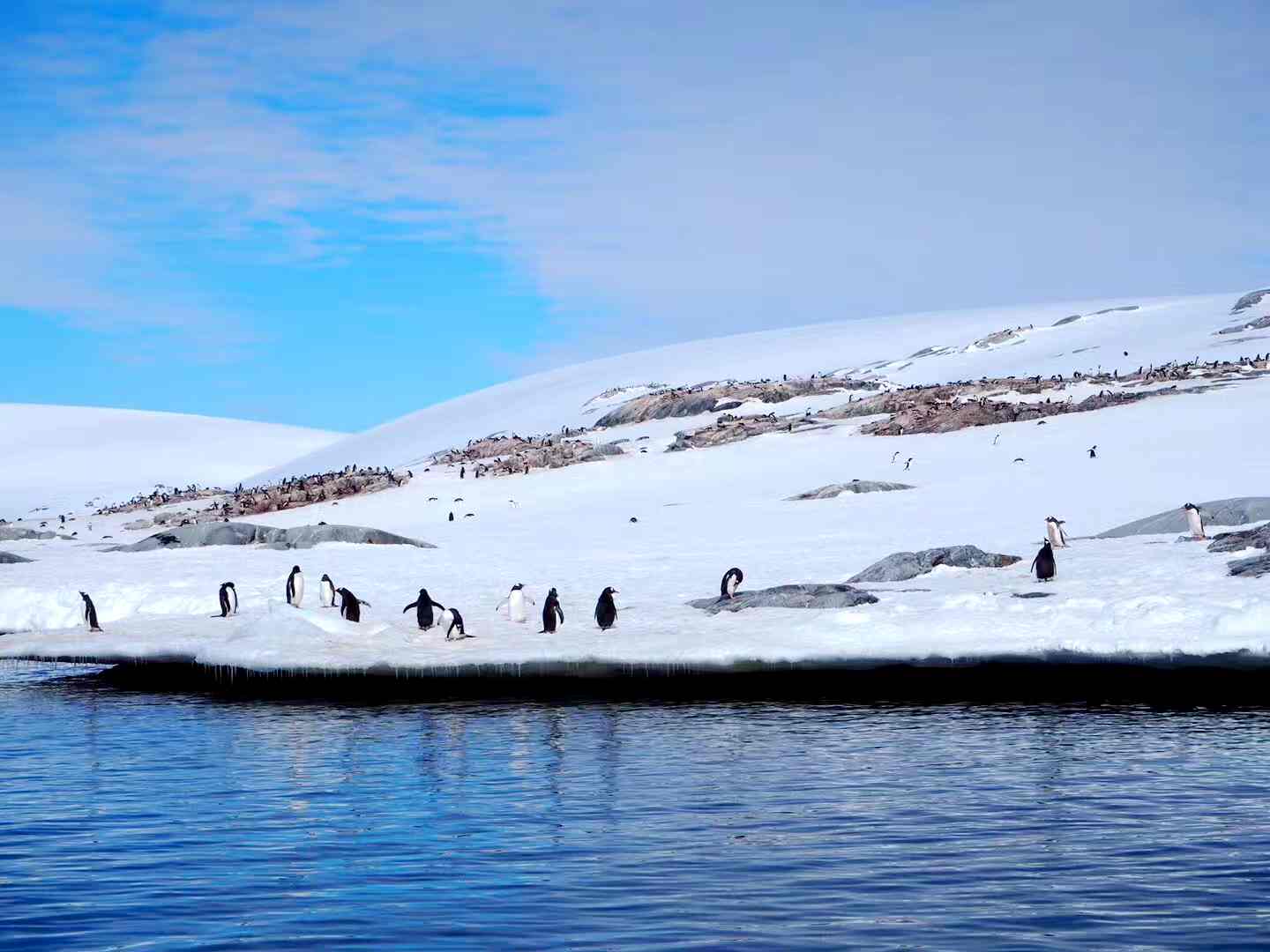 这里天空明媚蔚蓝,呼啸的风从头顶刮过;这里空气清新凛冽,企鹅成群结队地欢叫着;这里代表着最纯真的初心,最浩瀚的胸怀 。