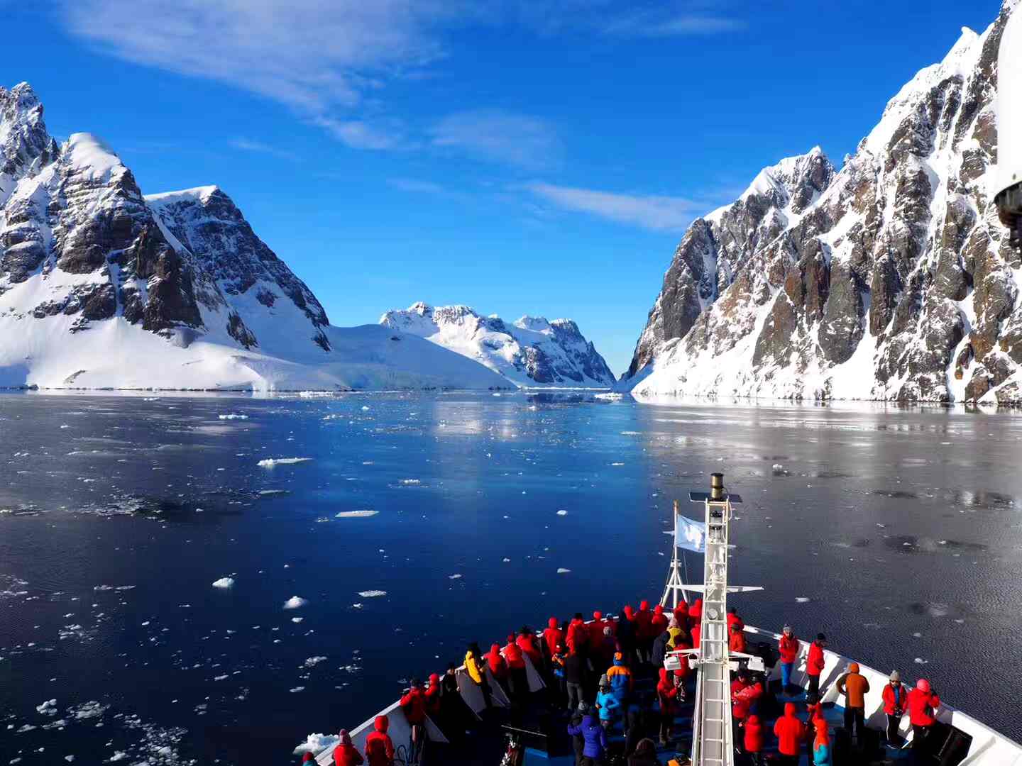 早上6点30分,探险队穿越11000米的利玛尔水道,在甲板上感受两岸的壮观奇景。