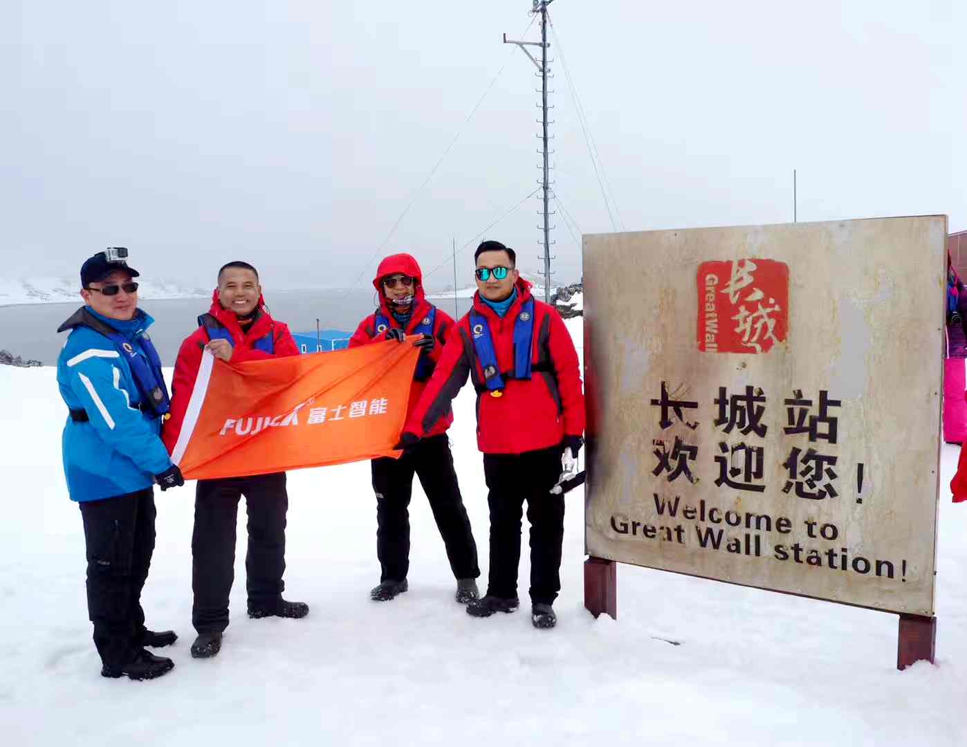 探险队在这冰天雪地里,热血澎湃,兴奋不已——我们终于让富士智能的旗帜尽情飘扬在这南极大陆上!