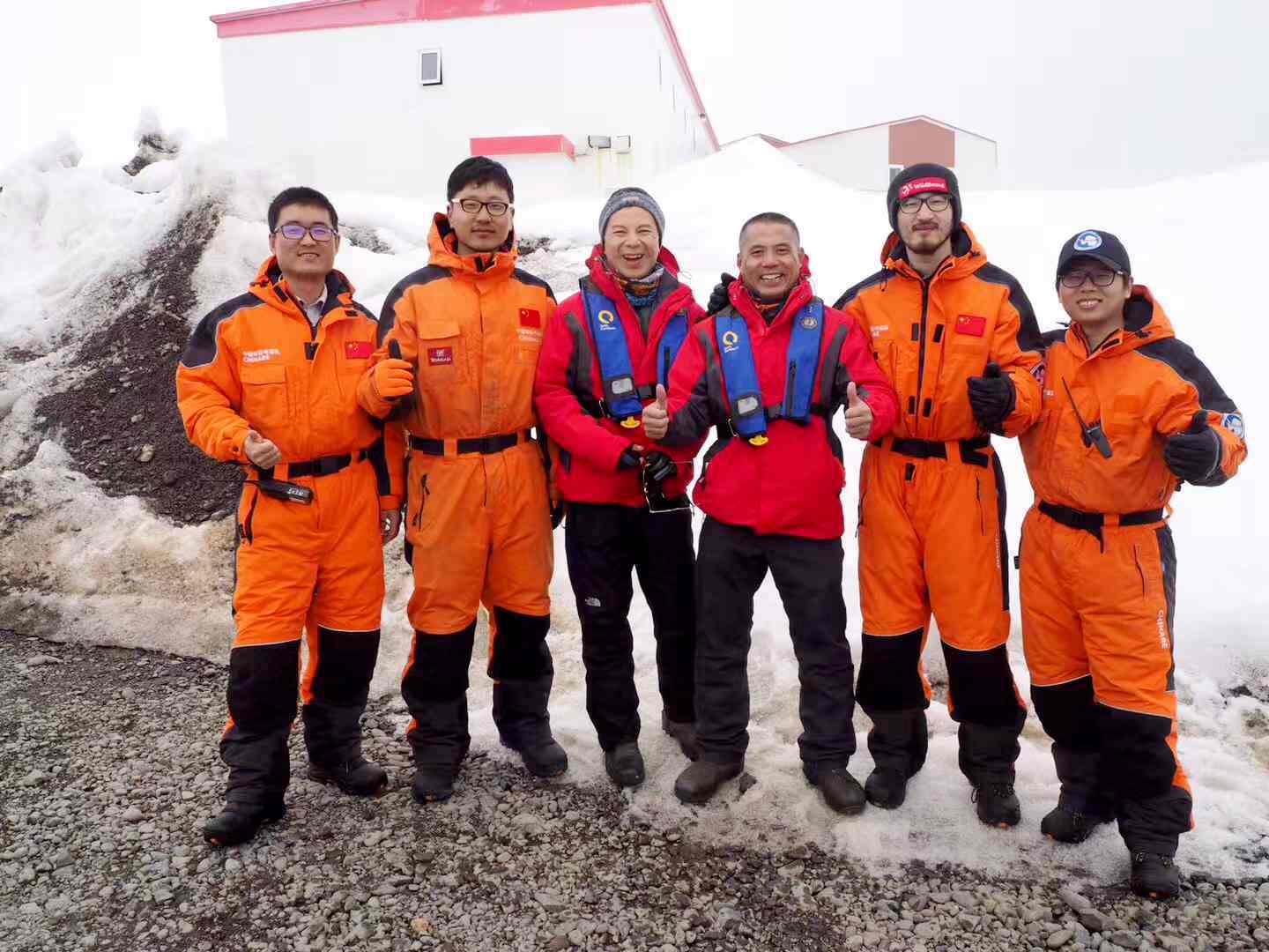 与中国南极科考队留影