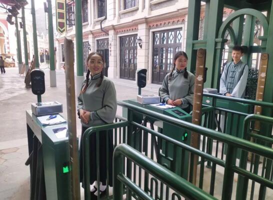 提前在网上购买门票的游客,系统将下发手机二维码凭证,在电影小镇入口闸机处可直接刷手机二维码入场;现场购票的游客可在闸机处通过扫描纸质二维码入场;工作人员和住宿游客可通过闸机处的人脸识别设备刷脸进出电影小镇。通过对不同类型人员的检票入场方式进行划分,方便电影小镇管理方对人员进行统一管理,为游客打造安全、有序的游玩环境,提高服务水平和服务品质。