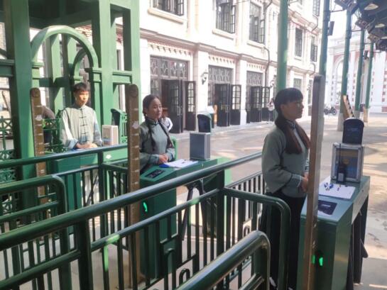 富士智能人脸识别通道管理系统集智能检票、人员出入控制、人流数量统计、访客人员授权功能于一体。游客购票后可持手机二维码或纸质二维码在通道上进行识别即可进入电影小镇。此举可有效规避闲杂人等扰乱管理秩序的风险,将安全隐患拒之门外。该系统还可记录人员进出时间及次数,进行人流数量统计,并将相关数据存入后台大容量数据库作为存档,以便管理方在需要时随时进行调取查询。