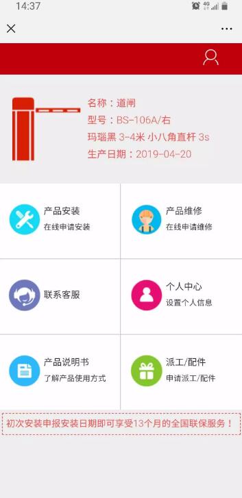 产品质保期计算——客户注册、登录成功后,系统自动计算产品质保有效期。客户除正常显示12个月全国联保服务外,将额外赠送1个月联保服务。