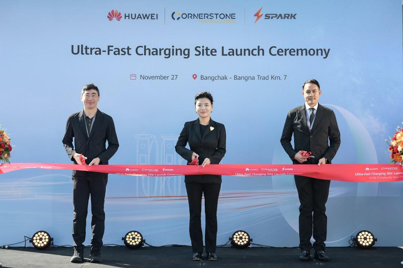 [泰国,曼谷,2025年11月28日] 随着东南亚电动车市场迎来快速增长,本港领先的绿色智能出行技术及应用加速"出海"布局。华为香港数字能源(以下简称“华为香港”)、基石科技Cornerstone Technologies(以下简称“基石科技”)及旗下泰国公司Spark EV Company Limited(以下简称“Spark EV”) 今日于曼谷联合宣布,双方在泰国开展合作的首批10个超快充站试点项目已有8个正式完成,冀通过运用先进的绿色智能出行技术——华为全液冷超充与实践经验,完善东南亚电动车充电网络布局。