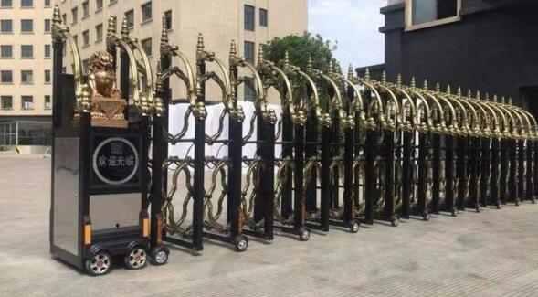 1、伸缩门规格:主管料采用50×51异型管材:交叉杆采用38×38方管。
